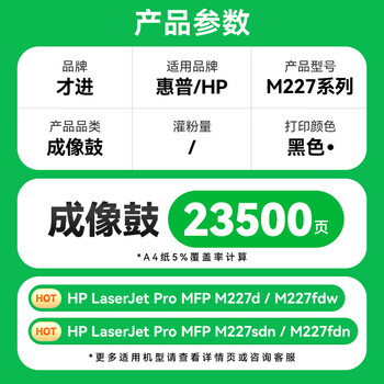 才进适用惠普M227fdw成像鼓HP LaserJet Pro MFP M227d鼓架227sdn硒鼓227fdn激光打印机CF232a原装墨粉盒专用