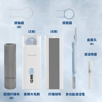 多功能清洁盒*1、多功能清洁笔*1、拔键器*1、清洁喷雾*1、金属头*1、拔轴器*1、超细纤维布*1