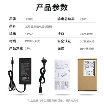 米瑞思(mryc)三星显示器电源线14V3A/2.5A/2.14A/1.78A/1.43A液晶电脑电源适配器显示屏通用笔记本充电器
