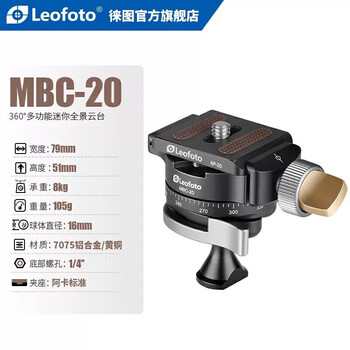 徕图(Leofoto)云台 迷你360度全景便携云台手机单反球形云台 MBC-20