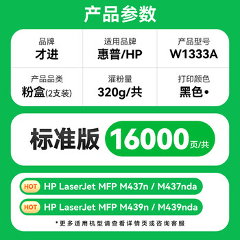 才进适用惠普W1333A粉盒LaserJet MFP m437n墨盒m437dn m437nda硒鼓m439n m439nda墨粉m439dn碳粉W1333X 333A