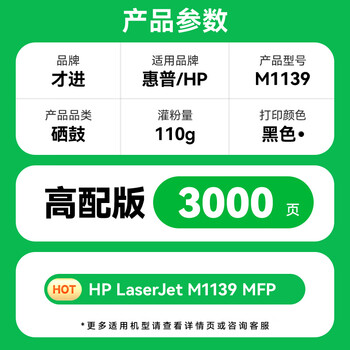 才进适用惠普M1139硒鼓HP Laserjet Pro M1139 MFP打印机墨盒hp1139原装黑白复印一体机易加粉1139专用碳粉盒