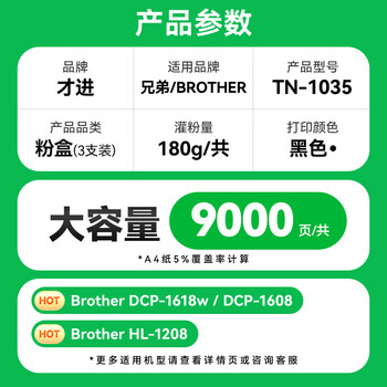 才进 适用兄弟tn1035粉盒1618w dcp1608打印机硒鼓hl1208 1218w mfc1919nw 1906 1908 1813 1816 1818 1819