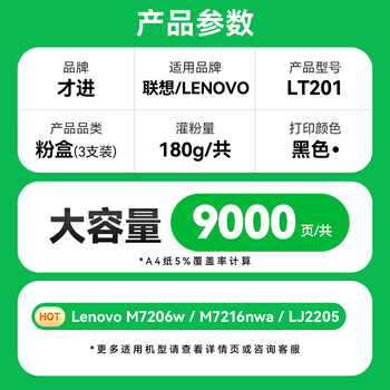 才进 适用联想m7206硒鼓lt201粉盒m7216nwa激光打印一体m7206w墨盒s1801 m7256whf lj2205墨粉m1851碳粉m1840