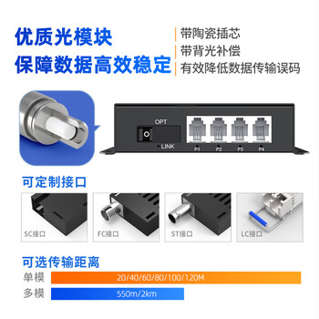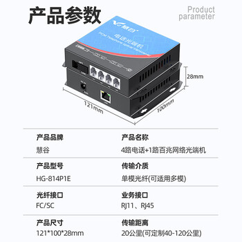 慧谷 电话光端机4路电话+1路百兆网络 PCM语音光端机 电话光纤收发器延长器 SC接口 HG-814P1E
