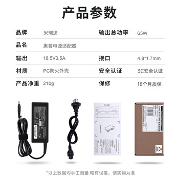 米瑞思(mryc)惠普笔记本充电器18.5V3.5A 65W小黄口通用hp110 421 500 510 V2000 V2620AU电脑电源适配器线