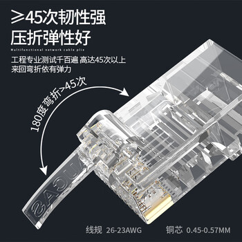 奥卡斯(AUCAS)超五类非屏蔽水晶头 RJ45工程专用连接头 cat5e纯铜镀金 8P8C电脑连接器 10个/袋 ACRJ56UP
