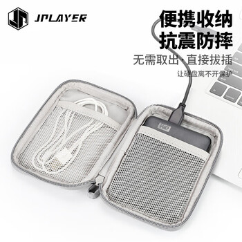 JPLAYER 移动硬盘包2.5英寸希捷东芝西部数据硬盘保护套防震硬盘袋收纳包 联名单层灰色 电竞