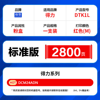 格赞DTK1L粉盒红色 适用得力DCM24ADN粉盒CP2400DN CM2400ADN打印机硒鼓墨盒墨粉盒碳粉盒