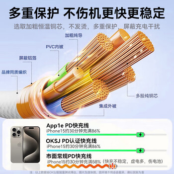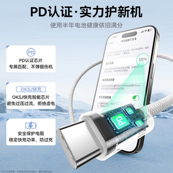 OKSJ苹果15充电线【品牌编织线材】双头Type-C数据线PD60W快充适用苹果iPhone15ProMax/iPad/Mac笔记本
