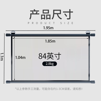 快朵小屋 84英寸16:9白玻纤挂壁幕布 简易安装高清投影仪幕布【免打孔】办公投影机幕布极米坚果小米爱普生