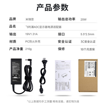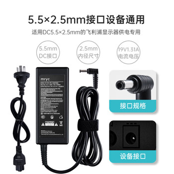 米瑞思(mryc)飞利浦AOC显示器电源线19V1.31A/1.58A/1.84A/2.37A/3.42A液晶电脑电源适配器台式机充电器