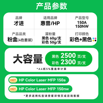 才进适用惠普150nw粉盒带芯片HP Color Laser 150a彩色激光打印机硒鼓 hq150原装BK M Y C墨盒w2080专用粉仓k