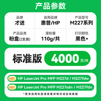 才进适用惠普M227d粉盒HP LaserJet Pro MFP M227d硒鼓hp227黑白激光打印机原装易加粉复印一体机30a专用晒鼓