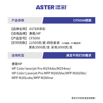 添彩202a硒鼓带芯片适用惠普m281fdw硒鼓 m254dw m254nw m281fdn m280nw打印机粉盒 cf500a墨盒 加大容量蓝色