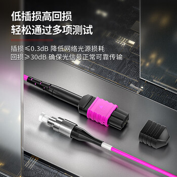 安普康(AMPCOM)万兆OM4多模MPO-FC光纤跳线 12芯10G/40G/100G光模块B极性 低插损阻燃分支跳纤3米 AMOM4FC12003