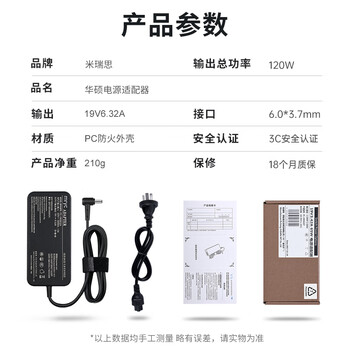 米瑞思 华硕笔记本充电器ASUS飞行堡垒6代7代FX86F FX95G电脑电源适配器线19V6.32A 6.0*3.7圆口带针120W