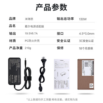 米瑞思(mryc) 戴尔笔记本充电器19.5V6.7A 130W适用Dell XPS13 9560 Precision 5540 5530电脑电源适配器线小口