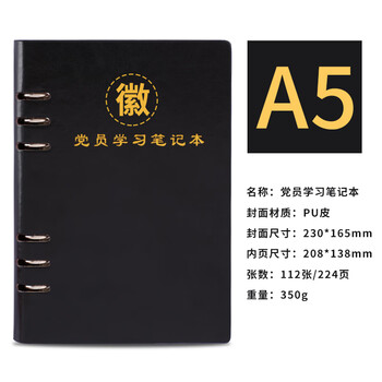 嘉然恒 活页款党员学习笔记本2023年款党史党建工作学习本三会一课党务党支部会议记录本可定制A5黑色
