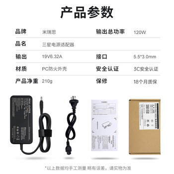 米瑞思(mryc)三星笔记本充电器19V6.32A 120W通用玄龙骑士8500GM 810G5M 800G5M电脑电源适配器线5.5*3.0
