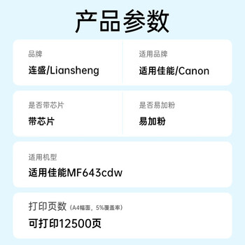 连盛MF643Cdw硒鼓适用佳能MF643Cdw粉盒image CLASS MF643Cdw专用