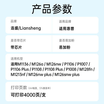 连盛CC388XS大容量易加粉硒鼓4支装 适用惠普HP M1136 P1108 M126a P1106 M1213nf打印机碳粉盒388a墨盒