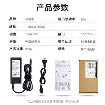 米瑞思(mryc)三星笔记本充电器19V4.74A 90W通用AR453/R458/R467/R428/R429/Q35/P28/X20电脑电源适配器线