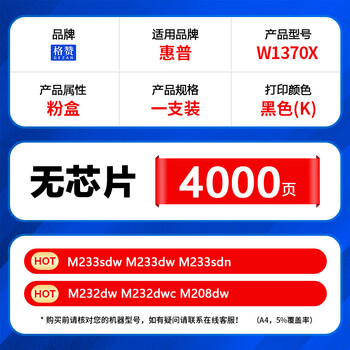 格赞W1370A硒鼓 适用惠普M232dw硒鼓HP 137A M233sdw M233dw M233sdn M232dwc M208dw墨盒粉盒 大容量无芯片