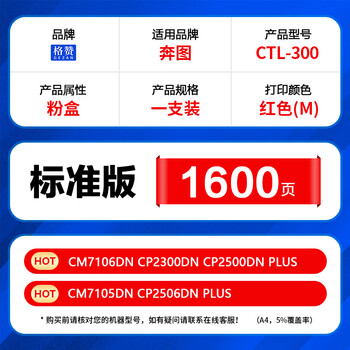 格赞CTL-300粉盒红色适用奔图CP2506DN PLUS硒鼓CM7105DN CM7106DN CP2300DN CP2500DN PLUS打印机墨盒碳粉