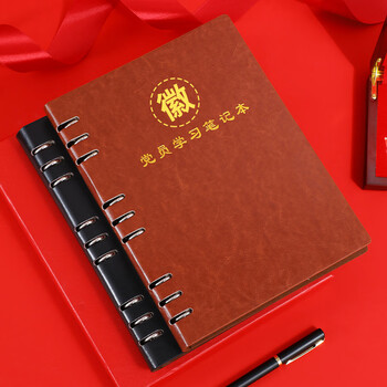 嘉然恒 活页款党员学习笔记本2023年款党史党建工作学习本三会一课党务党支部会议记录本可定制B5棕色