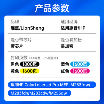 连盛适用惠普M283fdw/fdn硒鼓 HP Color LaserJet Pro MFP M283fdw/fdn专用墨粉盒 四色套装 带芯片 上机即用
