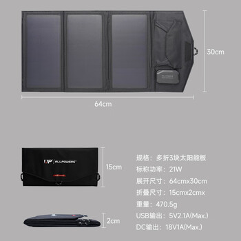 AP奥鹏 太阳能充电板18V21W 户外充电器单晶硅光伏发电板便携折叠移动电源露营应急充电宝