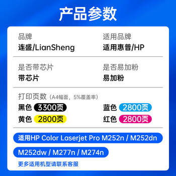 连盛CF400X黑色易加粉硒鼓 适用惠普HP M252n M252dn M252dw M277dw M277n M274n打印机墨粉盒 墨盒