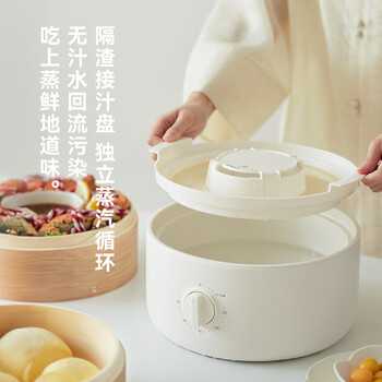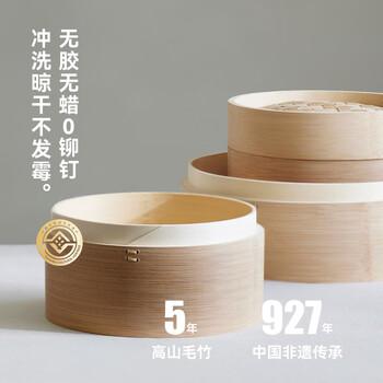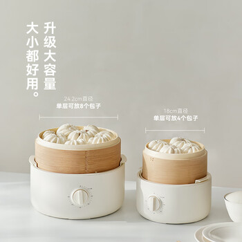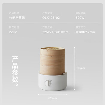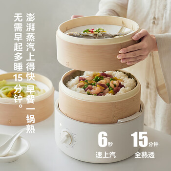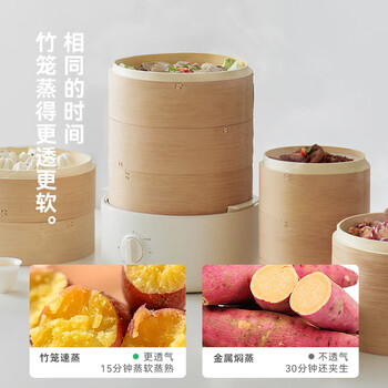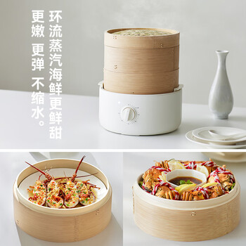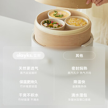 olayks立时 竹笼电蒸锅 竹云香竹子蒸笼蒸锅 竹蒸笼速热家用包子早点早餐机可定时多用途锅 多功能锅3层