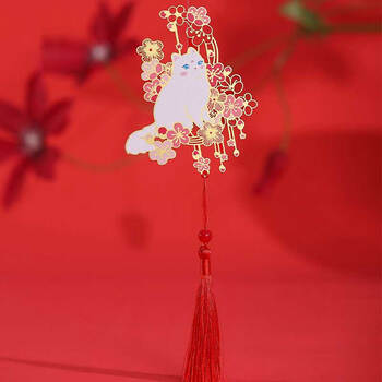 奉旨 宫猫花影书签 故宫御猫 中国风金属书签 生日礼物 桃花春意书签 梅影暗香书签单支装