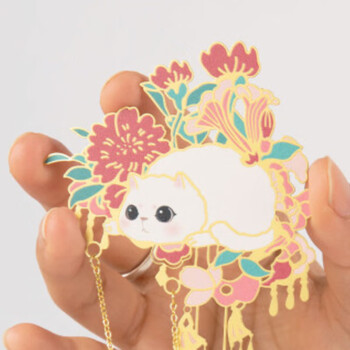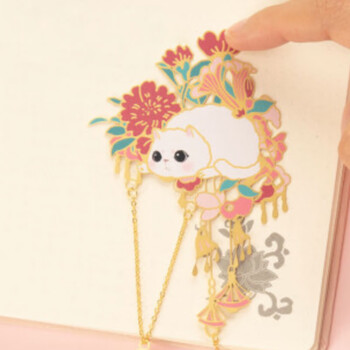 奉旨故宫文创 宫猫花影-十二花神故宫猫书签1个 黄铜金属创意 学生生日毕业礼物 五月石榴