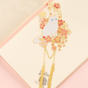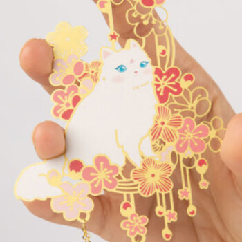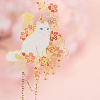 奉旨故宫文创 宫猫花影-十二花神故宫猫书签 黄铜金属创意 学生生日毕业礼物 十二月梅花单支装