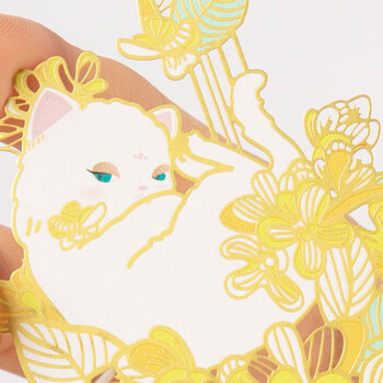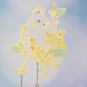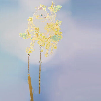 奉旨故宫文创 宫猫花影-十二花神故宫猫书签 黄铜金属创意 学生生日毕业礼物 八月桂花单支装