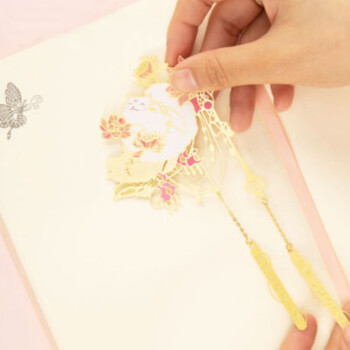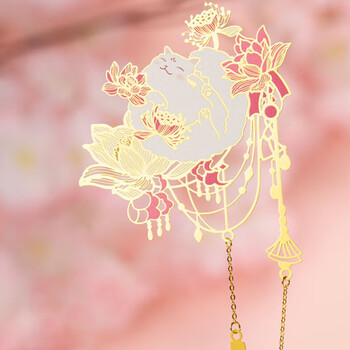 奉旨故宫文创 宫猫花影-十二花神故宫猫书签 黄铜金属创意 学生生日毕业礼物 六月荷花单支装