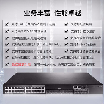 华三(H3C)S5500V2-28C-EI 24口千兆电+4万兆光+1扩展槽三层网管企业级网络核心交换机 自带单电源+双风扇