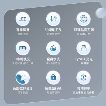 剃须刀*1、TYPE-C数据线*1、说明书*1、保护盖*1