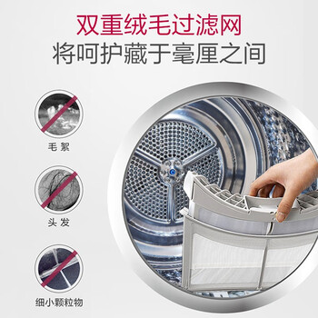 LG奢华白 烘干机 10KG大容量 除菌除螨 双转子变频热泵 30min快烘 双重绒毛过滤 RH10V3AV6W