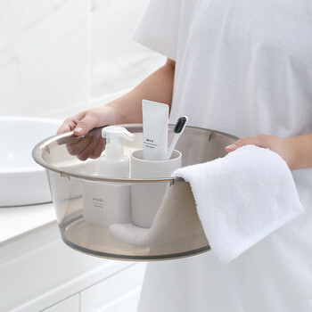 富居透明洗脸盆27cm洗衣盆塑料加厚洗脚盆洗菜盆子(小号)
