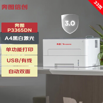奔图(PANTUM) 全国产化A4黑白激光单功能打印机 33页/分钟 自动双面 省心省力商用激光打印机P3365DN