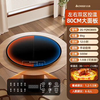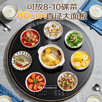 志高(CHIGO)【分区控温】暖菜板 热菜板保温板 饭菜加热板2025新款家用多功能圆形转盘可旋转餐桌垫FQNCB80S