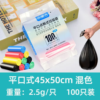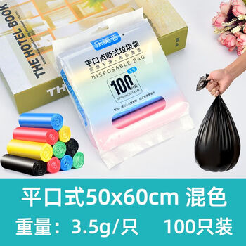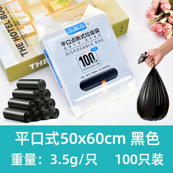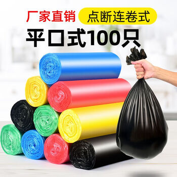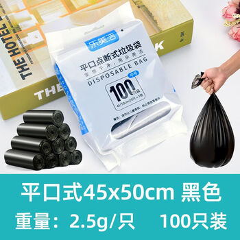 工邦达 垃圾袋 家用平口加厚中号黑色50x60cm100只装厨房一次性黑色大号拉圾桶塑料袋