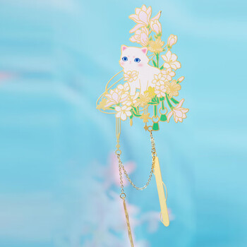 奉旨故宫文创 宫猫花影-十二花神故宫猫书签1个 黄铜金属创意 学生生日毕业礼物 二月玉兰