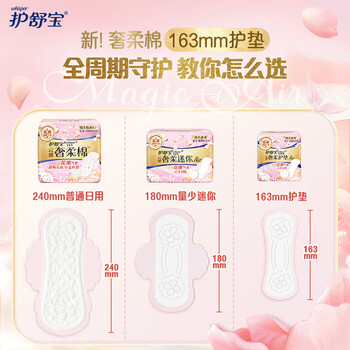 护舒宝奢柔棉气垫卫生巾护垫量少日用163mm66片迷你巾姨妈巾京东自营