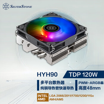 银昕(SilverStone)下压式CPU散热器HYH90(支持AMD AM5.INTEL 1700多平台/四热管/适配ITX机箱/PWM风扇)