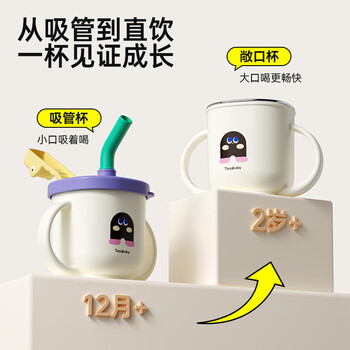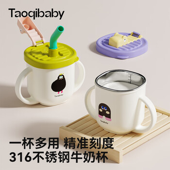 taoqibaby吸管杯儿童牛奶杯学饮杯喝奶杯带刻度豆浆杯宝宝不锈钢水杯泡奶杯